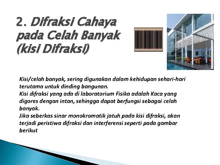 Seberkas cahaya dengan panjang gelombang 5000 a⁰ dilewatkan melalui kisi. 10 m) melewati celah tunggal menghasilkan pola difraksi orde terang pertama Seberkas sinar monokromatis dengan panjang gelombang 5000 å datang tegak lurus pada kisi. Sebuah cahaya monokromatis dengan panjang gelombang 5000 angstrom mengenai kisi. Seberkas sinar x dengan panjang gelombang 1,5 angstrom .