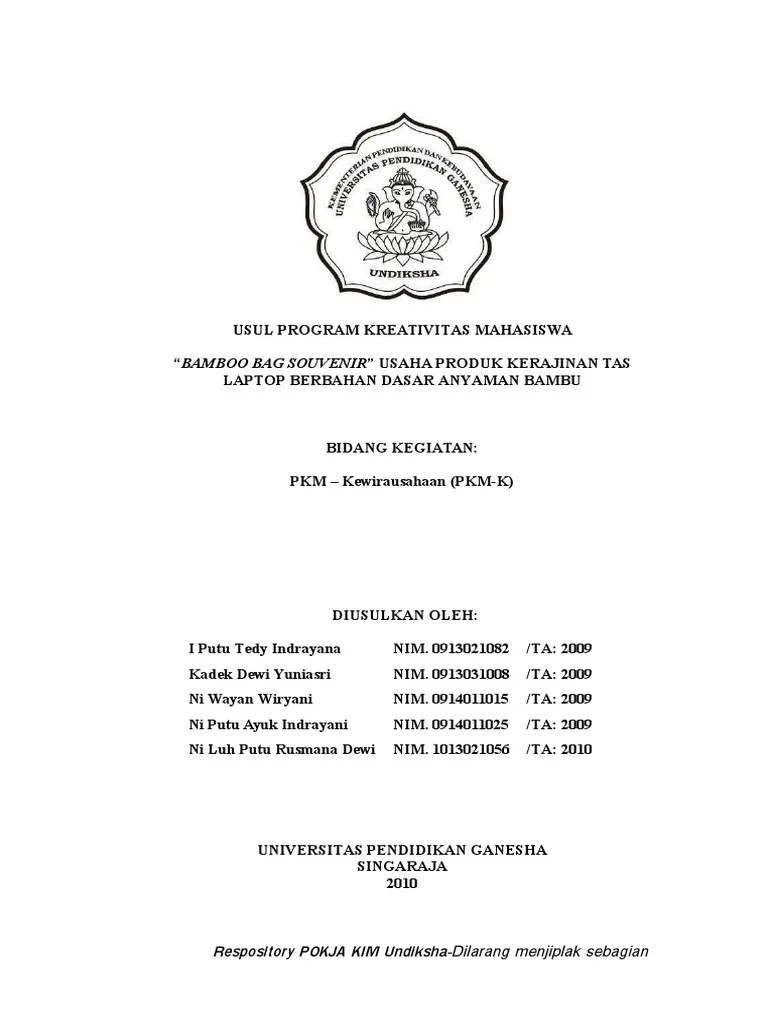 Keseluruhan proposal disimpan dalam satu file format pdf. Pdf | proposal program kreativitas mahasiswa yang diajukan oleh iqbal ambari cs,. Upaya menumbuhkan jiwa kewirausahaan mahasiswa melalui usaha kricangpa (kripik kacang. Gambar bebas dan gratis untuk digunakan ulang. Bentuk satu file format pdf, maks 5 mb,.